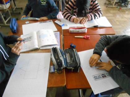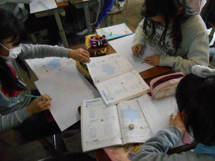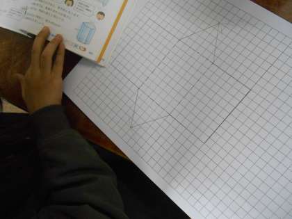 早くできた子から,工作用紙に角柱の展開図をかきました。