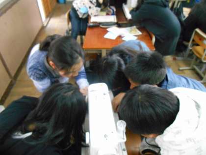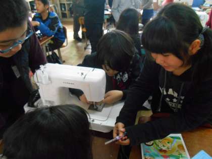 はじめはどきどきして,手つきがぎこちなく,見ているこちらにも緊張感が伝わる場面も多かったですが,どの子も少しずつミシンに慣れてきた様子です。