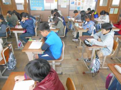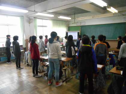 卒業式で在校生代表として6年生に送る歌についての鑑賞を行いました。
