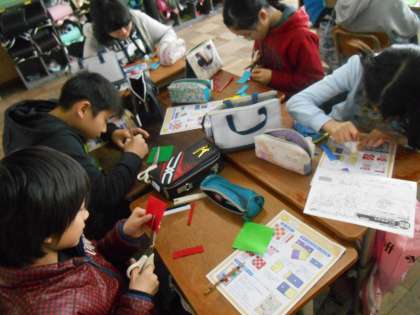 ミシンの扱い方を学習した後で,改めてミシン縫いと手縫いの特徴やよさの違いを実感できるよう,フェルトを使った実習をしました。