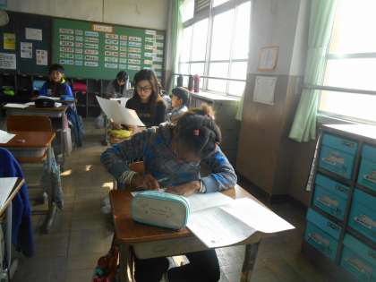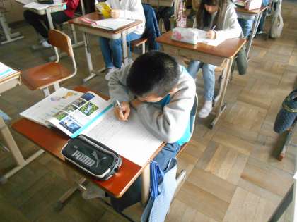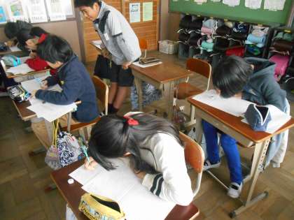 書き上げた物語を友だちと読み合い,推敲や調整を行っています。