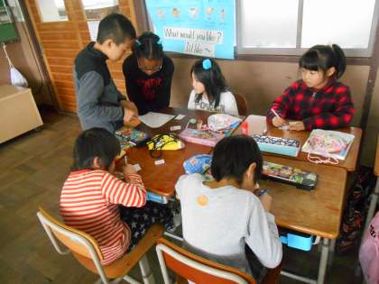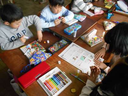 それぞれのたてわり班のお友だちに一生懸命やり方を説明し,6年生のために,5年生が中心となって卒業をお祝いするメッセージをまとめました。