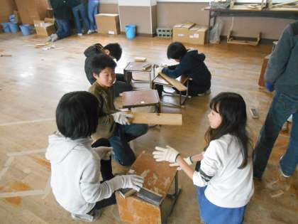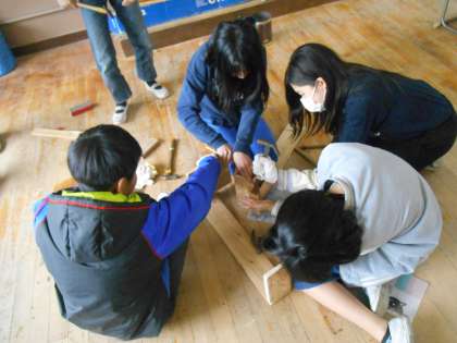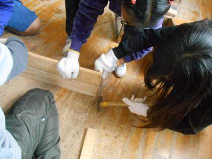 なめらかな質感に仕上げた木材を,釘を使って組み立てていきます。
