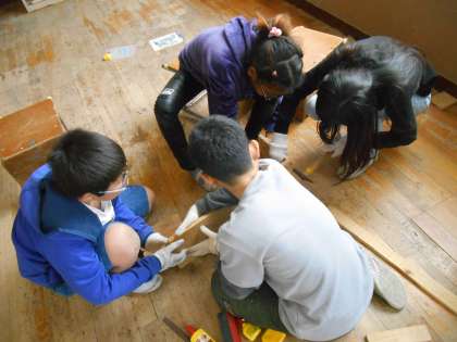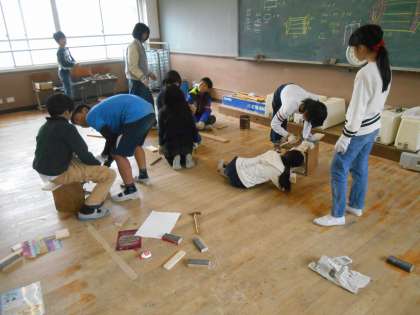 自分の手をうってしまわないよう注意しながら,順調に組み立てる姿が見られました。