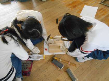 ニスをぬって来週には完成させられるよう,見通しをもって進めていきましょう。