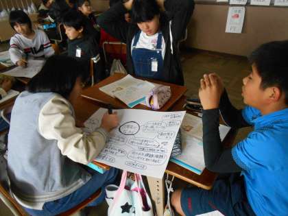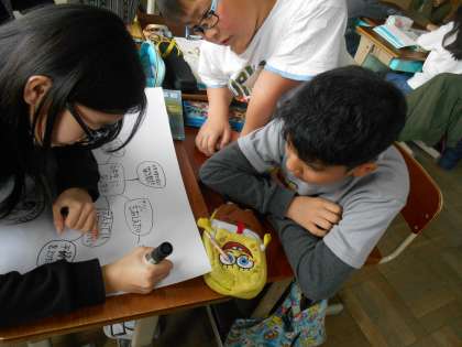 これまでの小学校生活を振り返り,「こんな6年生になりたい」というテーマのもと,6年生への期待や抱負を文章に書くためのイメージマップを作りました。