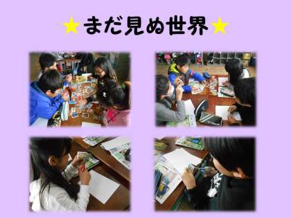 教科書の作品を見て,写真からどのような「まだ見ぬ世界」を想像したのか話し合いました。