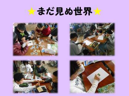 以前も使用した鑑賞カードをじっくり見て,心にとまる写真から「まだ見ぬ世界」を想像してみました。