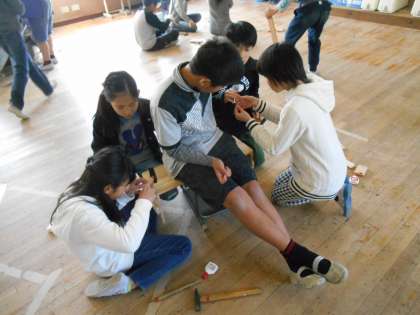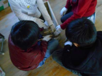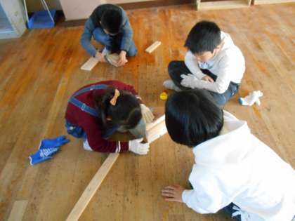 間違えて組み立てたり,釘が上手く通らなくても,めげずに取り組んだりする姿が見られます。