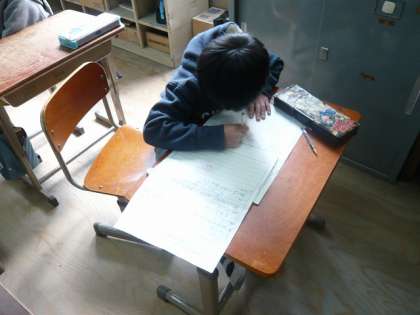 現在,国語の「楽しかったよ、二年生」の学習では,一年間で心に残ったことをテーマに作文をしています。