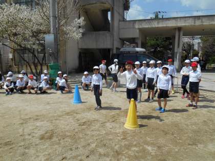 学年全員で50mのタイム計測を行いました。