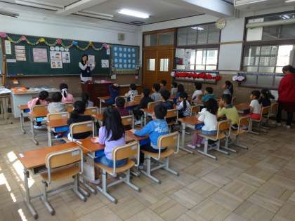 栄養職員の吉谷先生から給食についてのお話をしてもらいました。