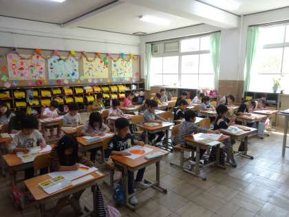 思い思いの絵を描き,色とりどりのおひさまが描けました。