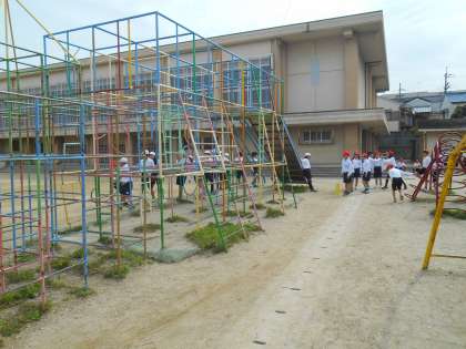 50m走の後は,遊具のすきまを使って,どんじゃんけんなどをして楽しみました。