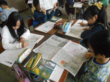 「編集のしかたや記事の書き方に注意して,新聞を読もう」というテーマのもと,新聞の面や記事の構成を確認しました。