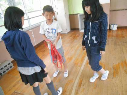 1mの紙テープや定規を使って1㎥(立方メートル)の大きさを作りました。