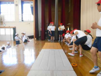 体育館に集合して注意事項を聞き,クラスごとに各種目の場所に移動しました。