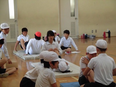 体育館の中では,上体起こしや長座体前屈,反復横跳びや立ち幅跳びをしました。