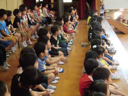 どきどきした表情の子どもたちでしたが,会の間,ステージの上で落ち着いて座っていられました。