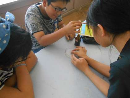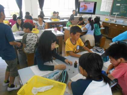 ヨウ素でんぷん反応について,「ほんまに色変わった!」「でんぷんがあるんやな。」など,反応を見た感想を話す姿が見られました。