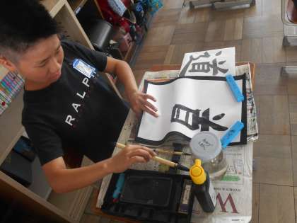 「にょう」の筆使いや,「にょう」と中の部分の組み立て方に気を付けながら,「道」という漢字を書きました。