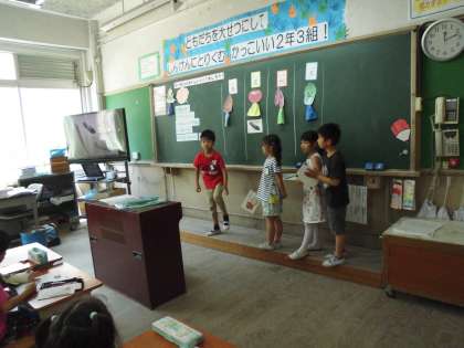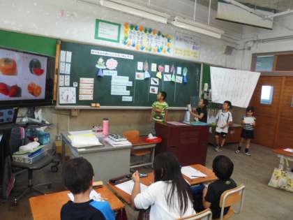 今週は2年生が食の学習をしました。「野菜村の村長さんはだあれ?」というお話を聞いて『旬』について考えました。「たけのこの旬は春です。」「柿の旬は秋です。」と発表も上手にできました。今は1年中食べられるものが増えてきましたが『旬』の感覚を持てる子になってほしいと思います。おうちでも『旬』のお話をしていただけたらと思います。
