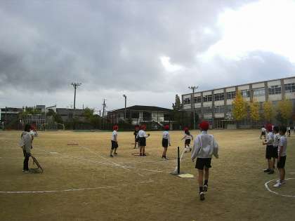 作戦をたてたり協力したりしながらハンドベースボールに取り組んでいます。