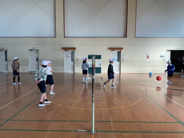 今週からバレーボールがスタートしました。サーブやレシーブ、トスなどとにかくチームでボールをつなぐことを意識して行いました。