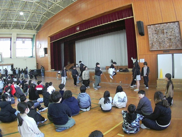 2月の集会がありました。1・2年生の発表や大縄大会のお知らせもありました。
