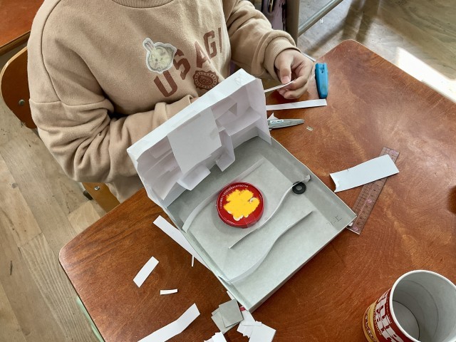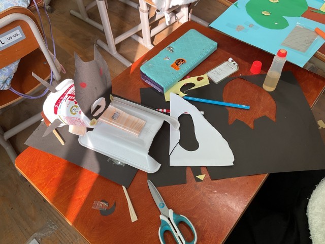 ゴム・磁石・風・光など3年生で学んだことをもとにおもちゃ作りをしました。アイデアがあふれていました。