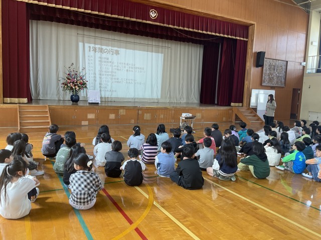 今日は早速学年集会をしました。担任紹介や専科の先生の紹介をしました。