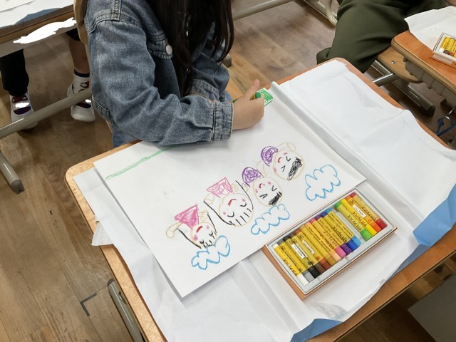 自分の好きなものを想像したり出し合ったりし、どのような形や色で表すかを考えました。そして、形や色を工夫しながら、楽しく表しました。
