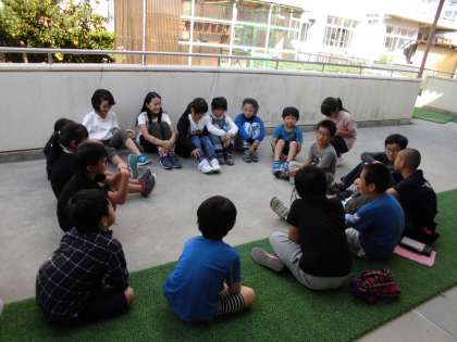 今日は「かがやき遊び☆」の日です。かがやきグループのリーダーが,メンバーのことを考えて遊びを計画しました。中で遊ぶグループと外で遊ぶグループに分かれて,遊びが始まりました。下学年が楽しんでくれると上学年はもっと楽しくなります。みんなのキラキラ笑顔がはじけていました。これからもっと仲良くなるために,もっと楽しくなるために,最後は感想や思いを交流する「振り返り」です。「もっとやりたかったです。」という下学年の言葉ににこにこ笑顔で答えるリーダーたちです。
