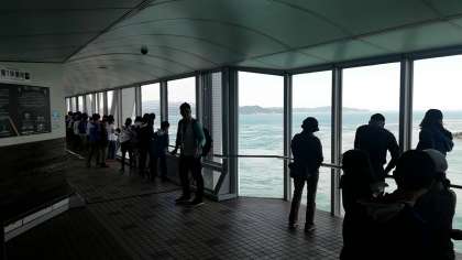 大鳴門峡を渡って,鳴門に着きました。海が広がりとても美しい景色です。『渦の道』では大鳴門峡の下を歩いて,上から鳴門の渦潮を見学しました。渦がいくつもいくつもできていて眺めていると引き込まれそうです。