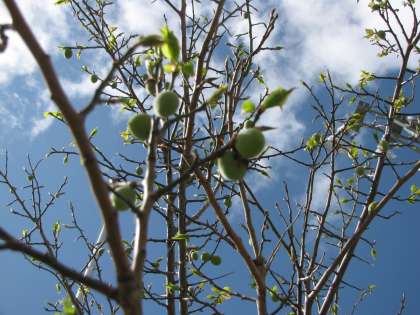 「時計広場」の梅の木です。2月ごろ花を咲かせていたのですが,もう2センチメートルくらいの緑のかわいい梅の実ができています。6月ごろには直径センチメートルくらいの丸々太った実に成長するでしょう。明日は,野草を見てみましょう!