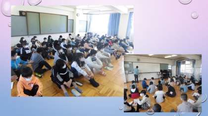 1時間目は,学年で国語をしました。素敵な詩を深く読んで,みんなで楽しくお話を作りました。グループごとにオチのある面白い話をつくっていてなかなか見ごたえがありました!