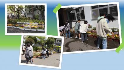 中間休みに学校のお手伝いをたくさんしてくれました。花のプランターや棚をどんどん運んで,いい笑顔でした。