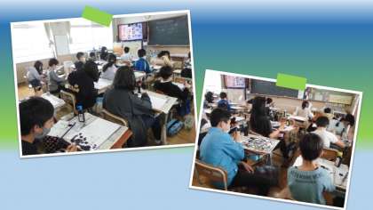 図工は「墨と水で広がる世界」墨で独自の世界観を表現しました。個性が出ていて面白かったです。