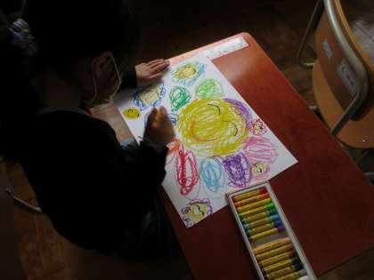 図画工作の時間には,「おひさまにこにこ」の学習で,にこにこ笑っている様子を描きました。