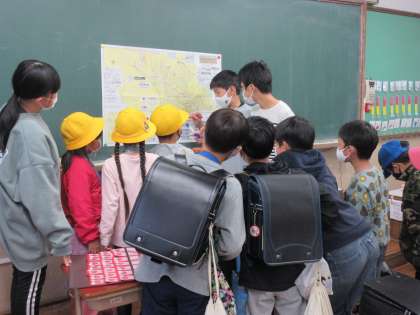 初めての5時間目は,「町別子ども会」でした。5・6年生が町のリーダーとして,教室まで迎えに来てくれたり紹介してくれたりしました。帰りは,同じ町別のお兄さんお姉さんたちと集団下校をしました。