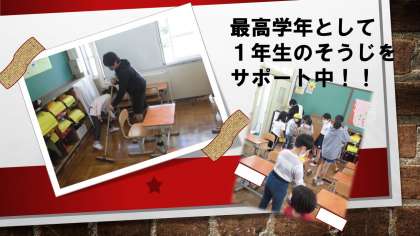 1年生も6年生のお兄さんやお姉さんと一緒に掃除をすることができてうれしそうです。