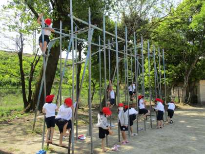 遊具で遊んだり,1組・2組・4組合同でしっぽ取りをしたり・・・
