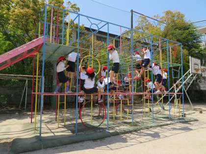 今日は体育で総合遊具の使い方の確認とからだほぐしをしました。3年生になって総合遊具は一番上まで上がれるようになります。総合遊具は事故も多いので,これから安全に気を付けて楽しんでほしいと思います。また,からだほぐしでは王様じゃんけんをしました。チームで協力し,楽しく活動できましたね!