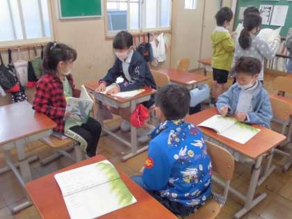 国語科の学習で,ふきのとうの音読発表会をしています。