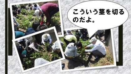 今日は,3月に植えたジャガイモの芽かきをしました。