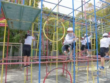 今日は,外でリレー遊びと,総合遊具の使い方の確認をしました。