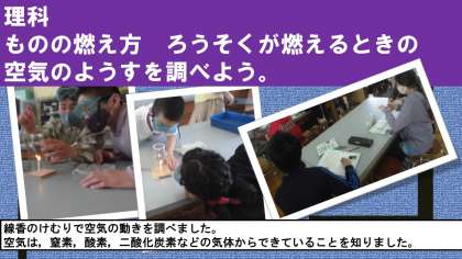 理科の学習では,ものの燃え方で線香のけむりを使って,空気の動きを調べました。