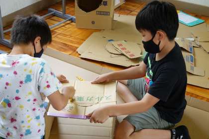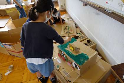 先週に続き,図画工作科「ようこそ!ゆめのまちへ」の学習で楽しいまちを想像しながらグループで建物をつくりました。学校やペットショップ,温泉など,たくさんの建物がたち,素敵なまちになりました。来週は自分たちがつくった建物を探検しながら,作品の良さや工夫を見つけたいと思います。