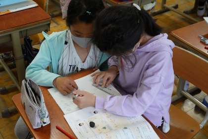 算数科で「1けたでわるわり算の筆算」の学習に取り組んでいます。5月17日(月)は,あまりのあるわり算の筆算の仕方や答えの確かめ方を考えました。はじめは「難しそうだな」と言っていた子ども達ですが,問題を解いていくうちにだんだんやり方がわかり,たくさんの子ども達が「もっと練習」の問題に取り組むことができました。