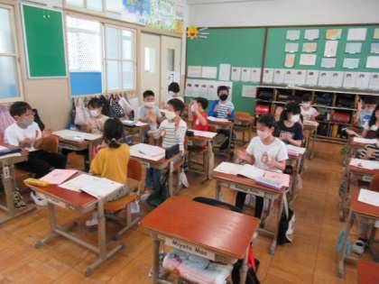 手拍子1,手拍子2に分かれて叩くところが難しいですが,友だちのリズムにつられないように練習していました。